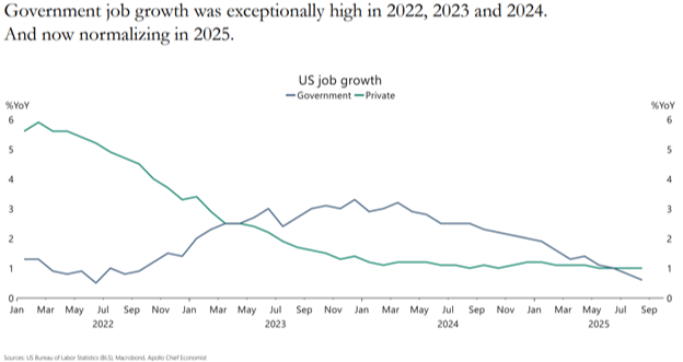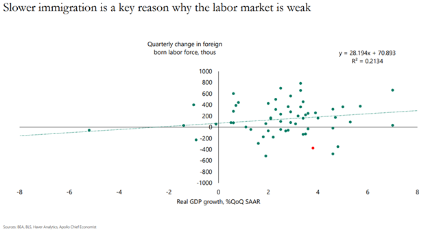 The bottom line is that the weak labor market is not due to weaker labor demand, but rather to weaker labor supply because of immigration, AI implementation and a normalization of job growth in the public sector.